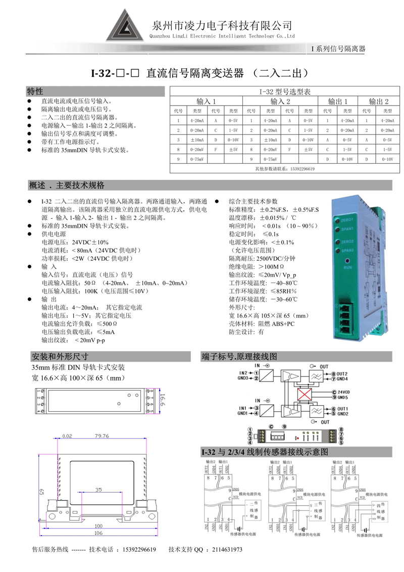 I-32 雙路直流信號隔離變送器(二入二出)